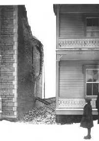 Damage was reported in the epicentral zone as well as in Quebec City and in Shawinigan. Thanks to his field trips and his collection of newspapers of the time, seismologist E.A. Hodgson gave us numerous descriptions and pictures of damage of regions affected by the earthquake. Chimneys and unreinforced masonry buildings were found to be particularly sensitive to ground vibrations.
