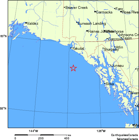 159 km SSE of Yakutat, AK