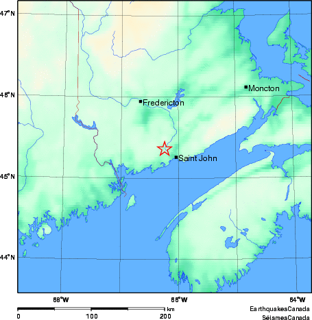 - Fortement ressenti à Saint John, Grand Bay-Westfield, Rothesay.