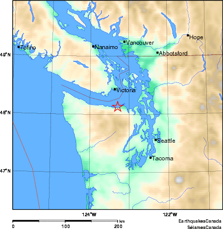 - Légèrement ressenti à Victoria, Sidney, Mill Bay, Mission, Surrey, C.-B.