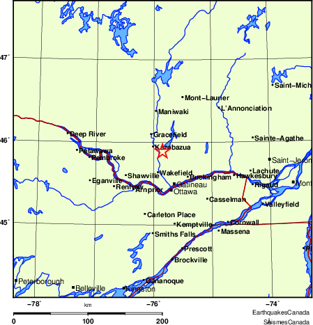 46 km NNW of Gatineau, QC